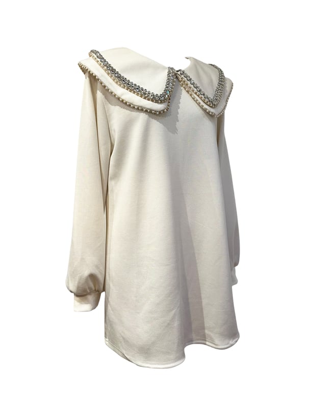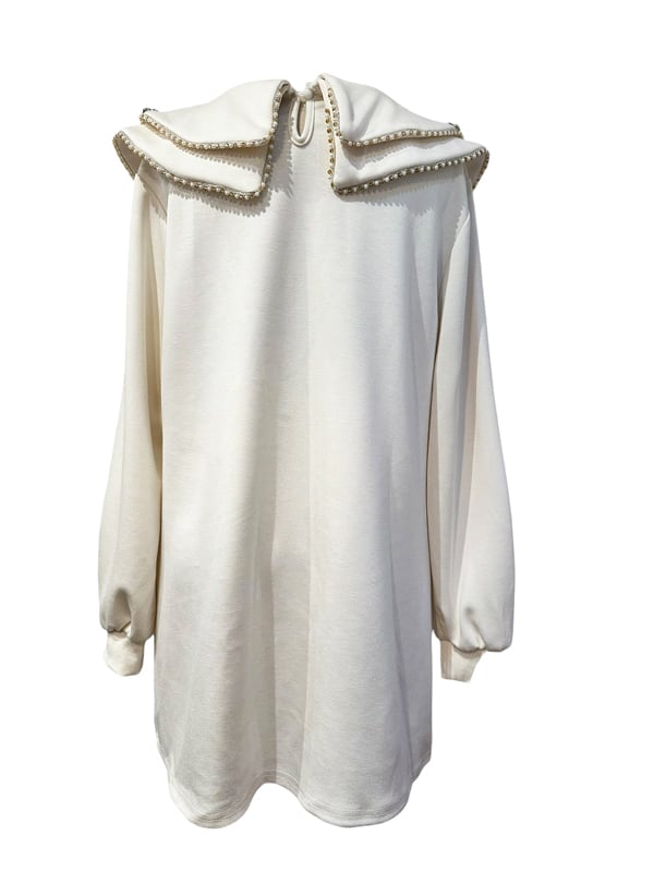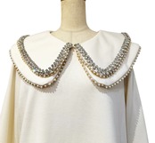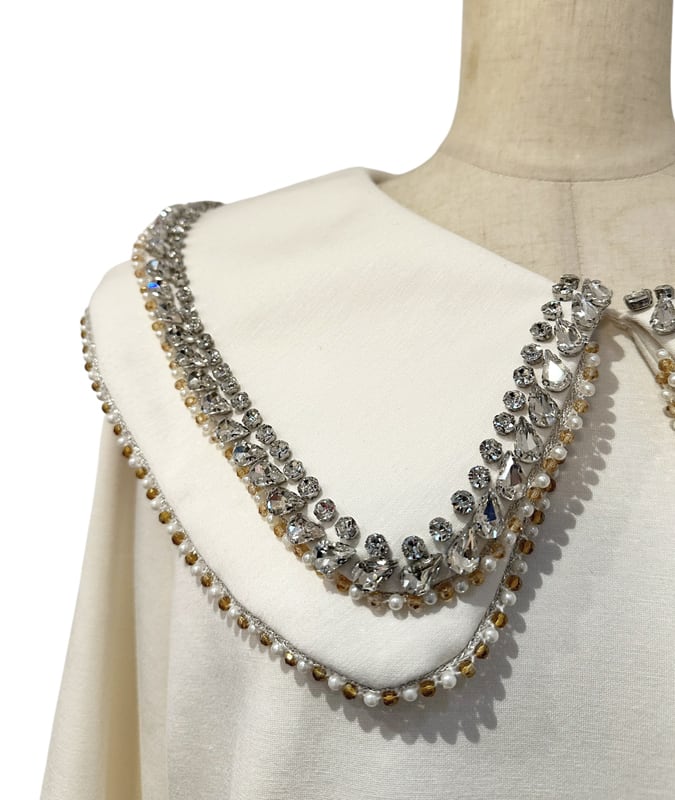 ■ディテール ソフトスウェット/中厚手のネオプレン素材/プルオーバー/ラウンドカラー/ストレッチ/ビジュートリム/ダブルカラー