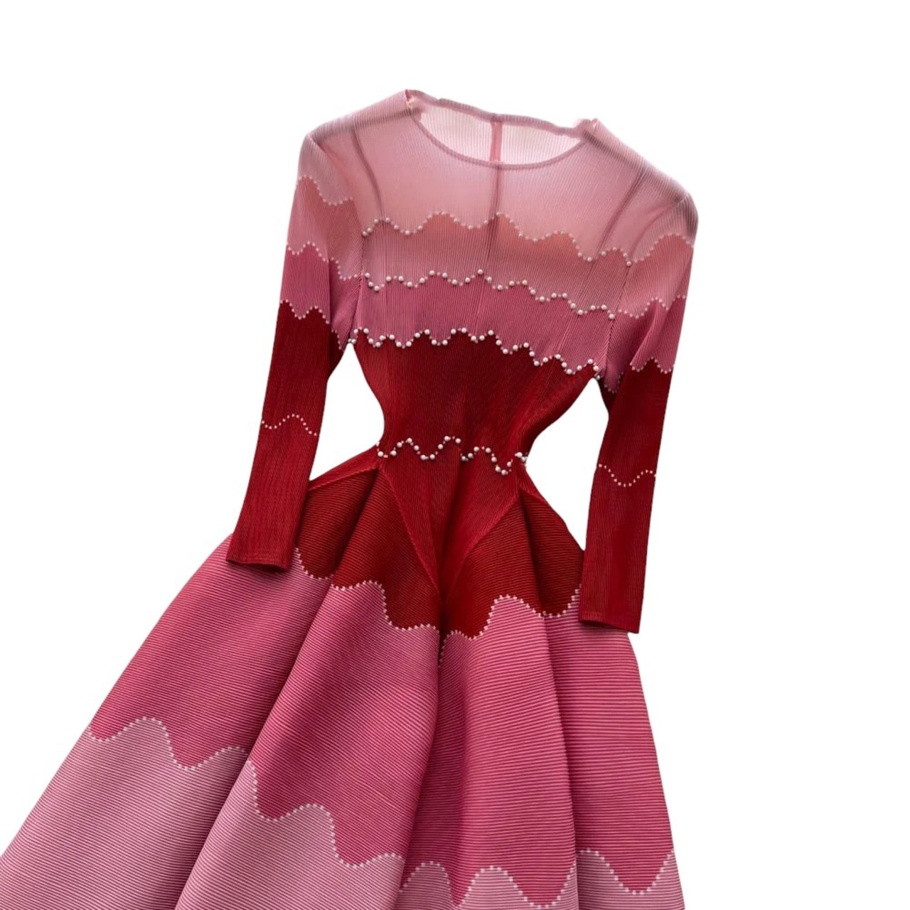■ディテール プリーツ/クルーネック/プルオーバー/パール/グラデーション