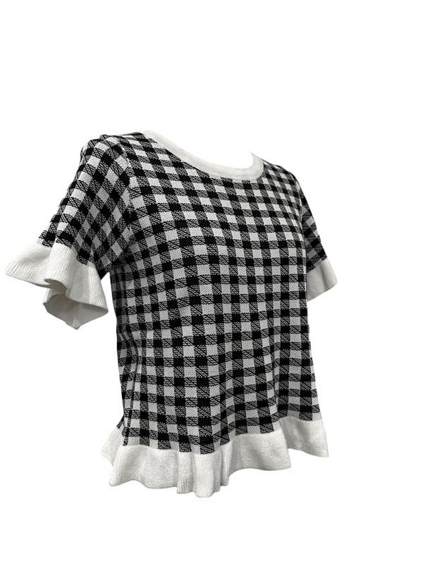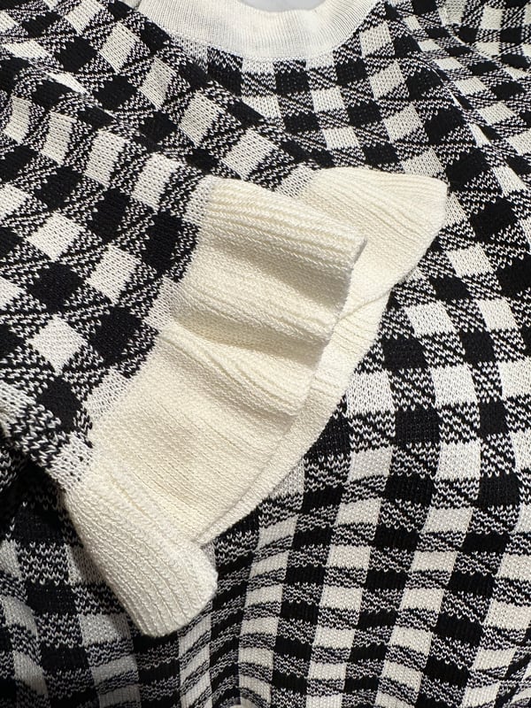 ■ディテール ニット/ラッフルトリム/チェック/プルオーバー