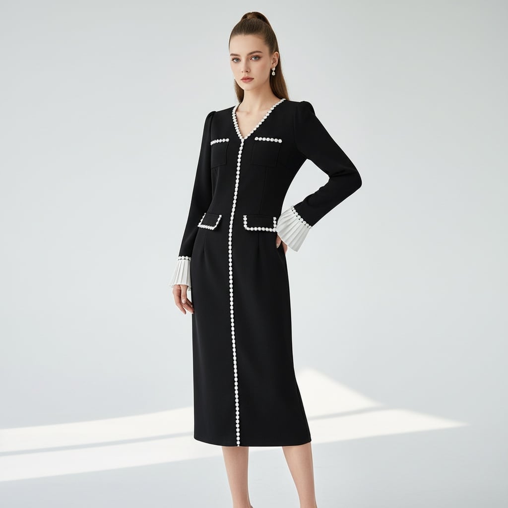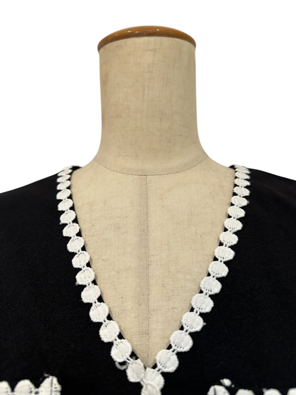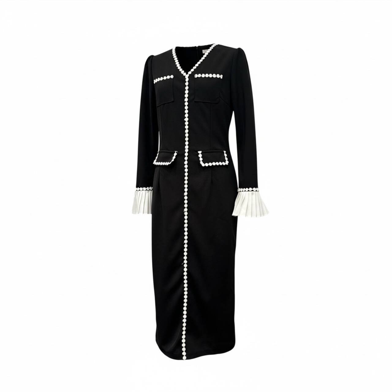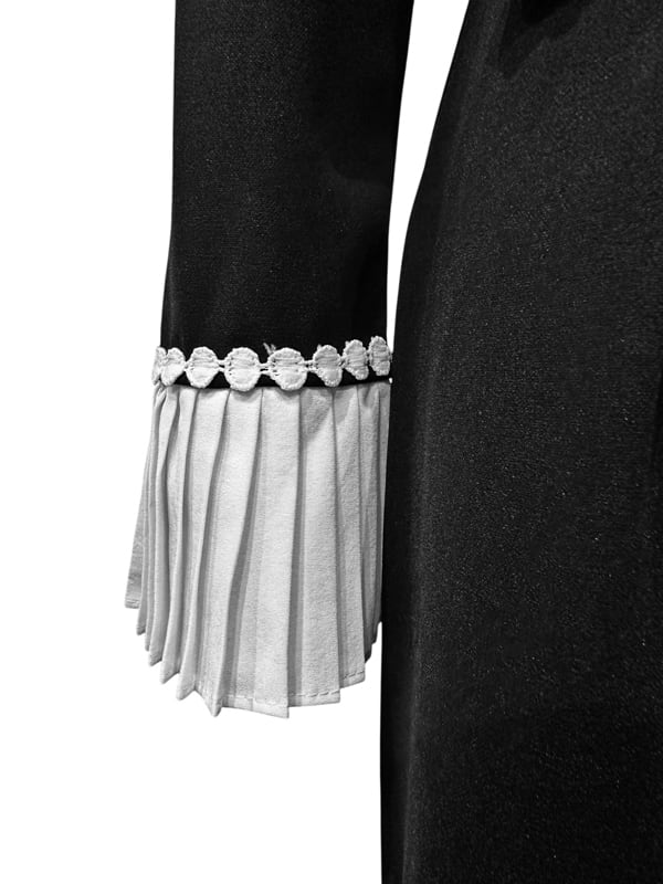 ■ディテール クレープ/ジャージー/ストレッチ/Vネック/配色/プリーツカフ/ジッパー/パフスリーブ