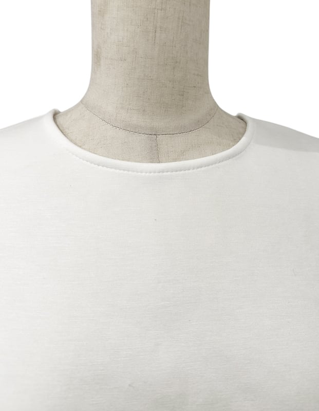 ■ディテール ソフトネオプレン/オーガンジーヘム/プルオーバー/ペプラム/ワイドフィット