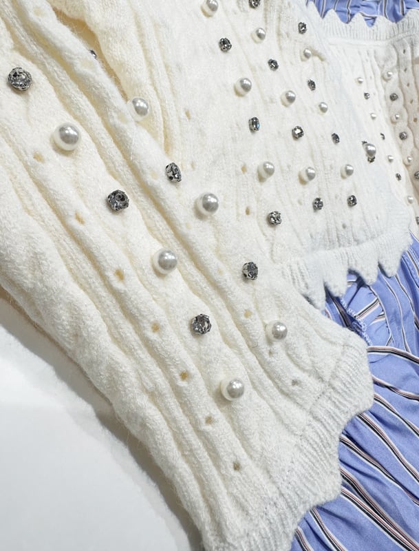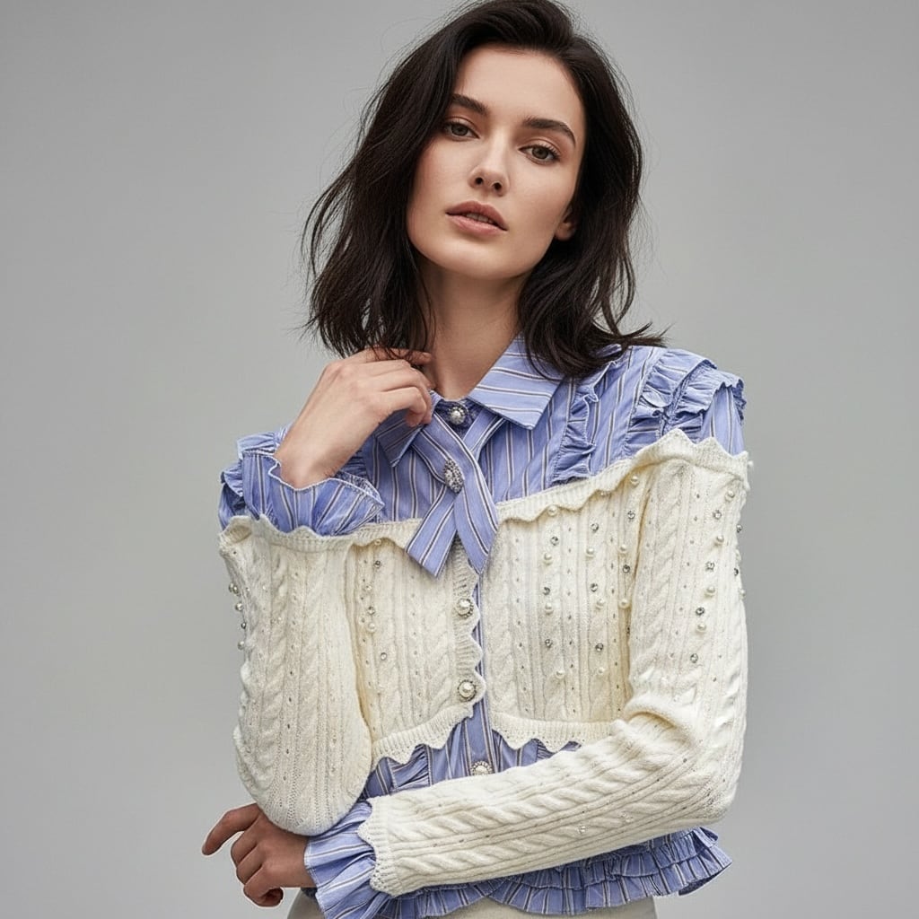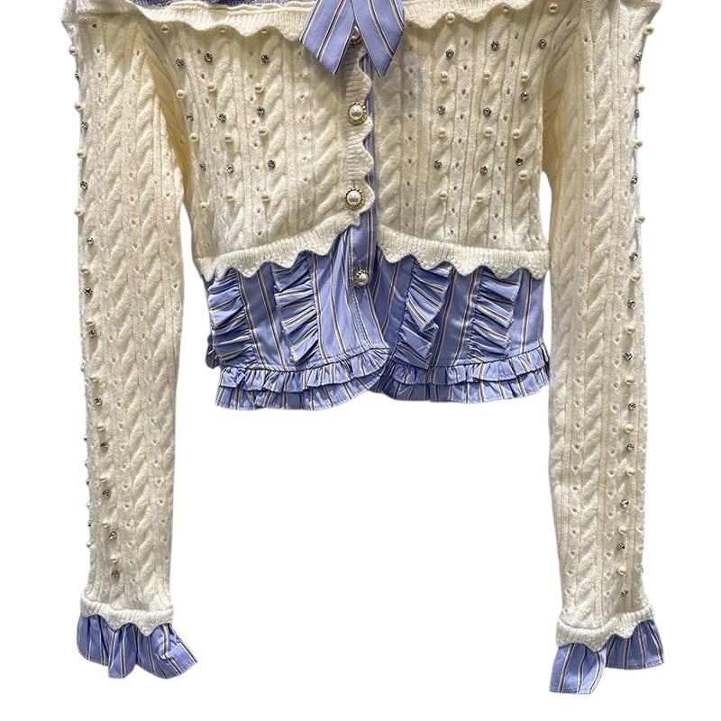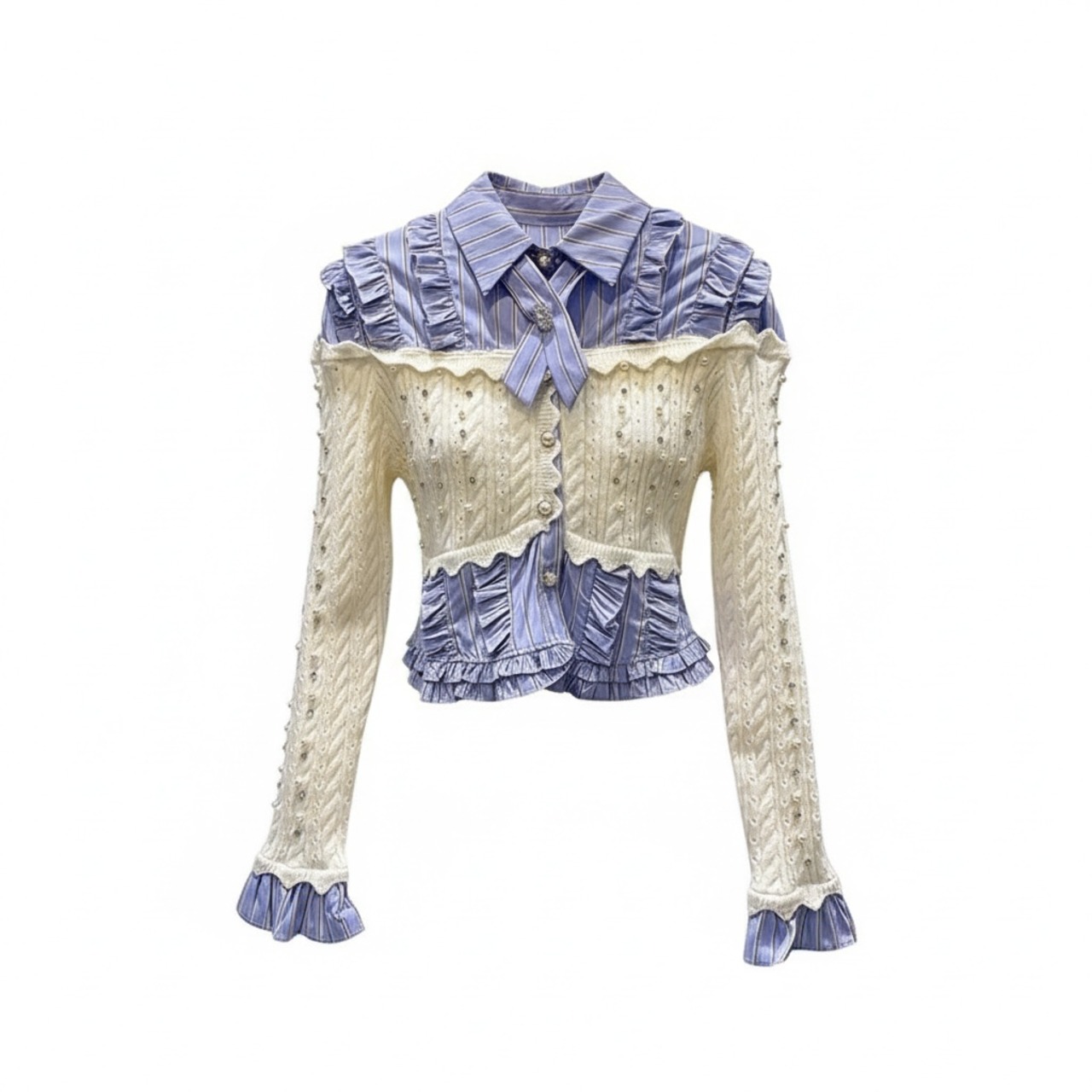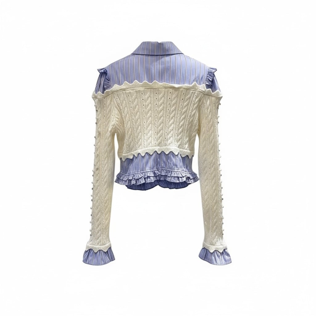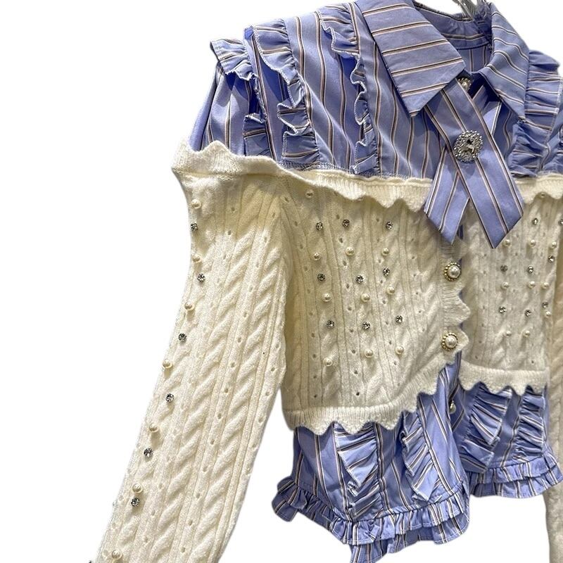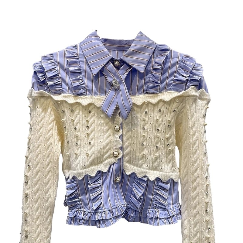 ■ディテール ストライプシャツ/ラッフル/ニットドッキング/ストレッチニット/ビジュー
