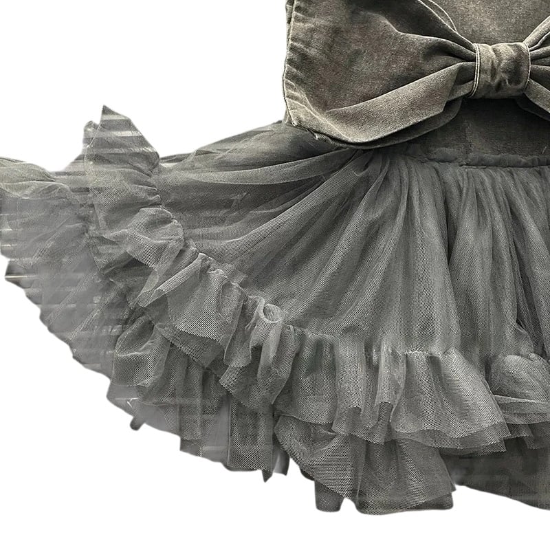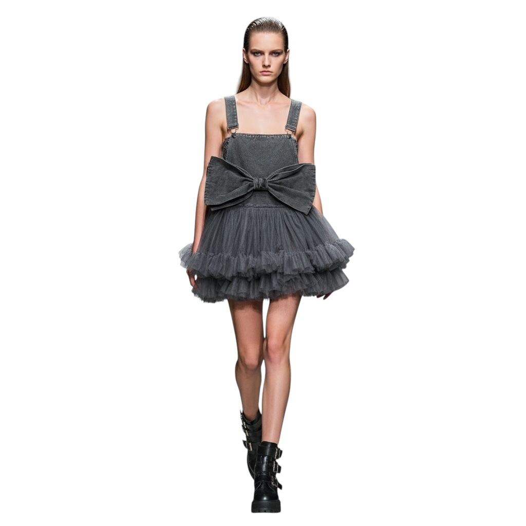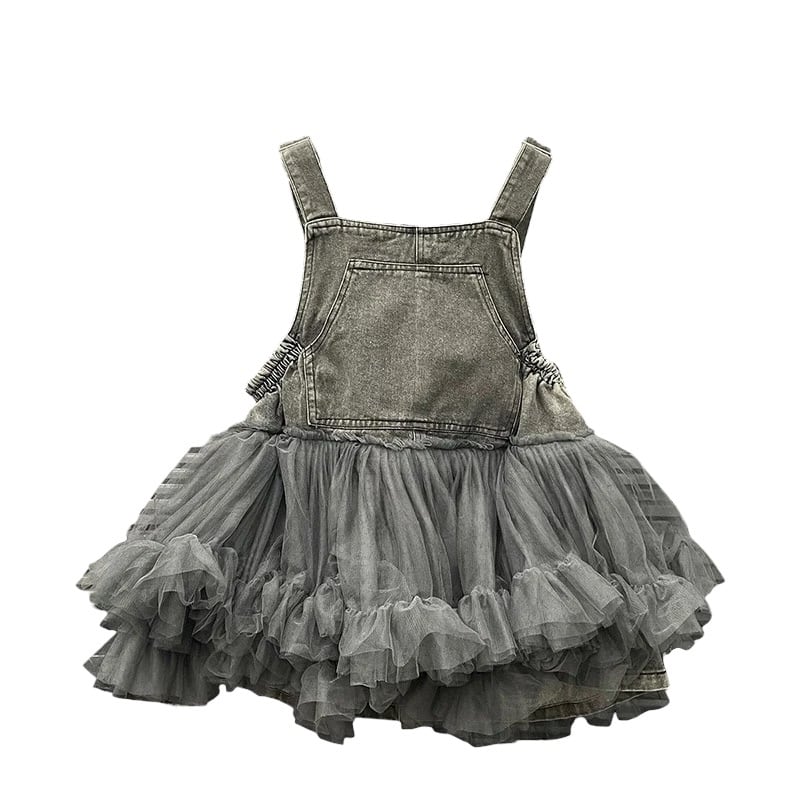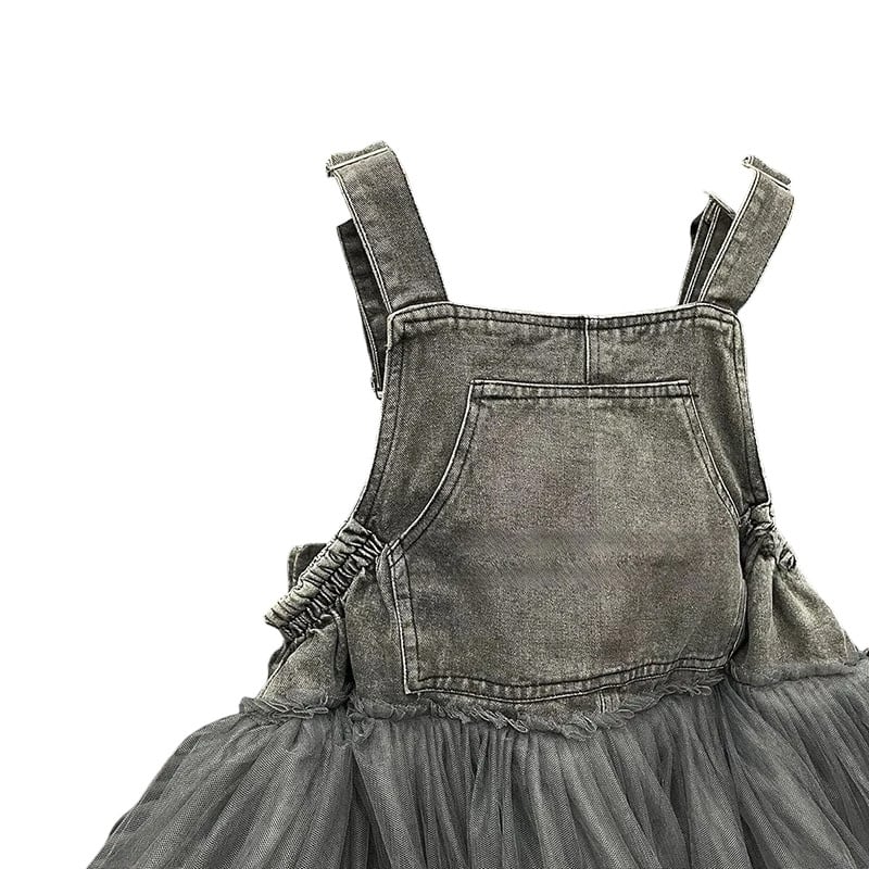 ■ディテール デニムサロペット/ワンピース/チュール/サイドゴムのギャザー/ストラップ長さ調節可能