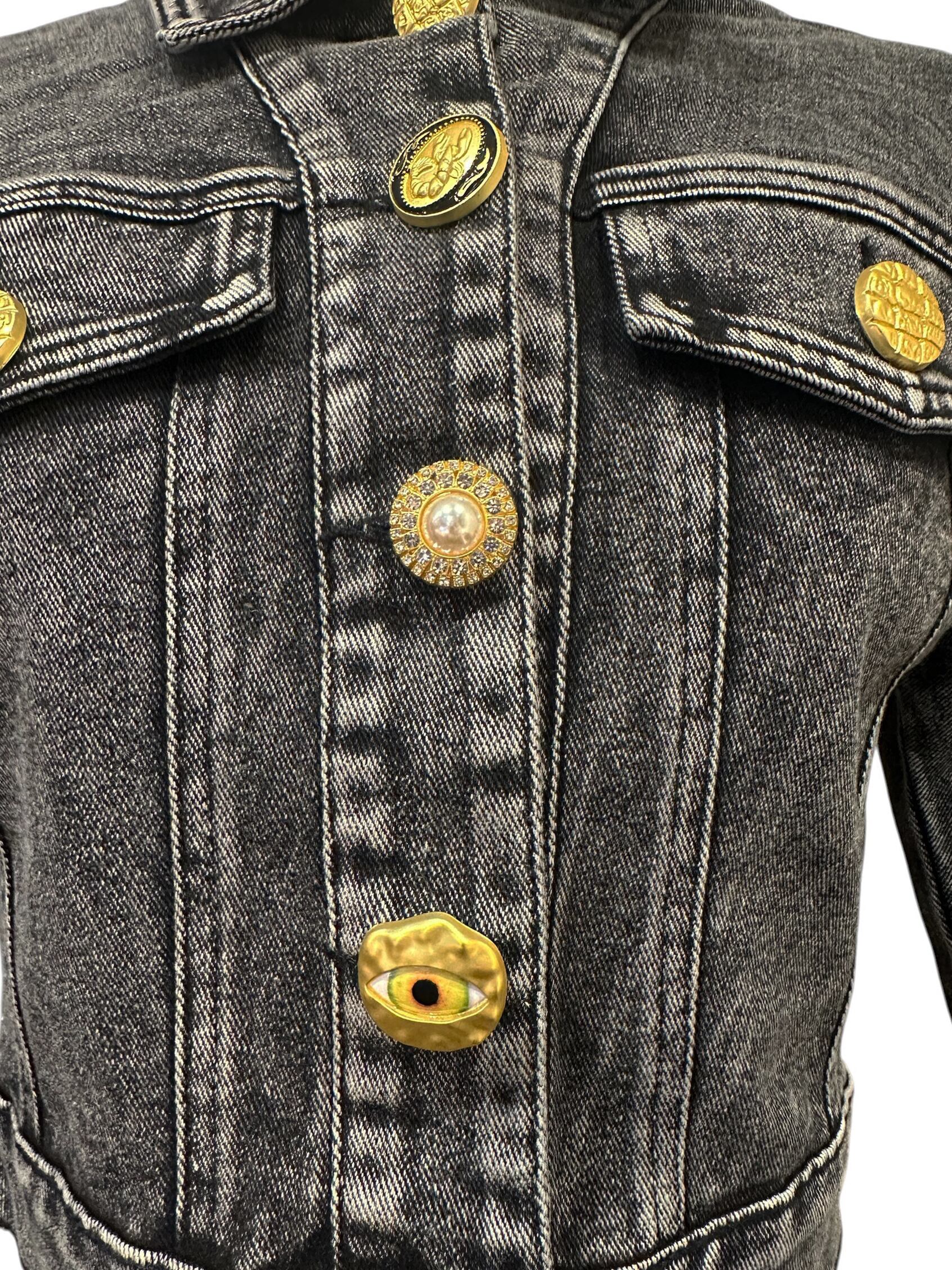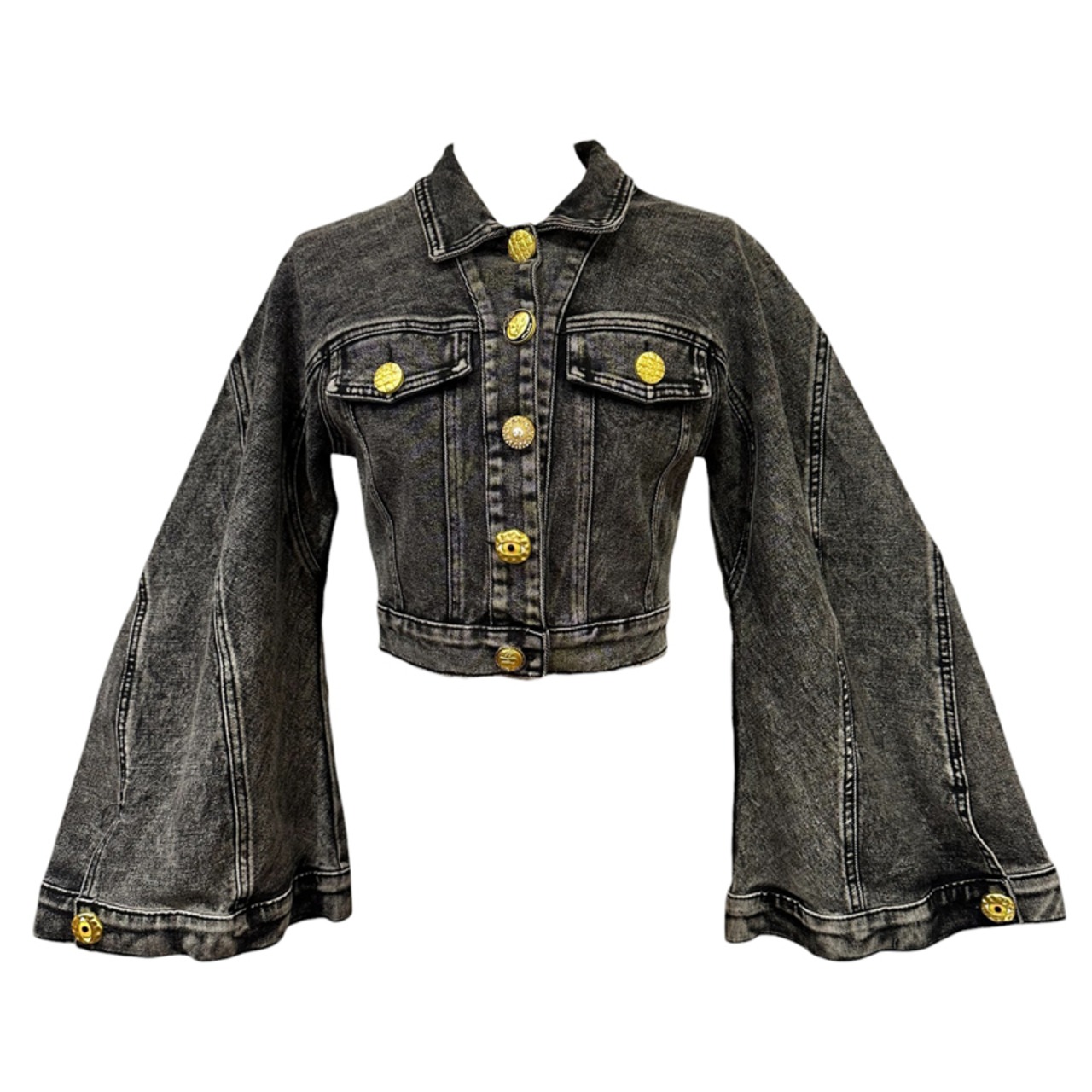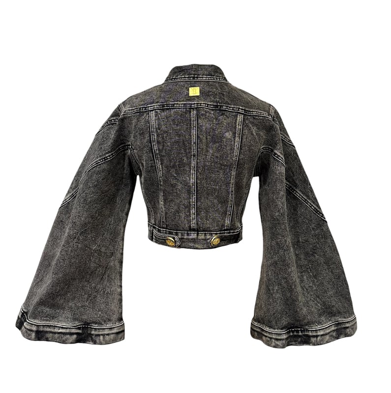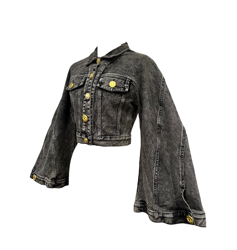 ■ディテール クラシックカラー/ウォッシュ加工/フレアスリーブ/ショート丈