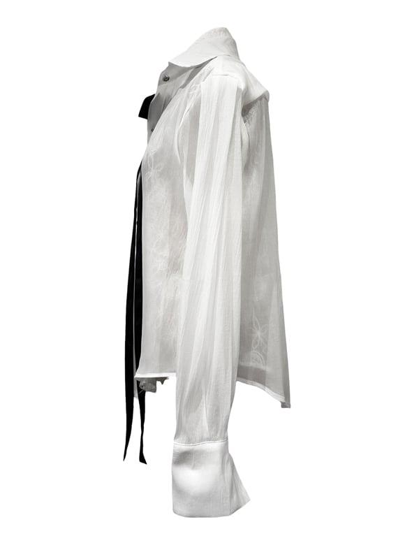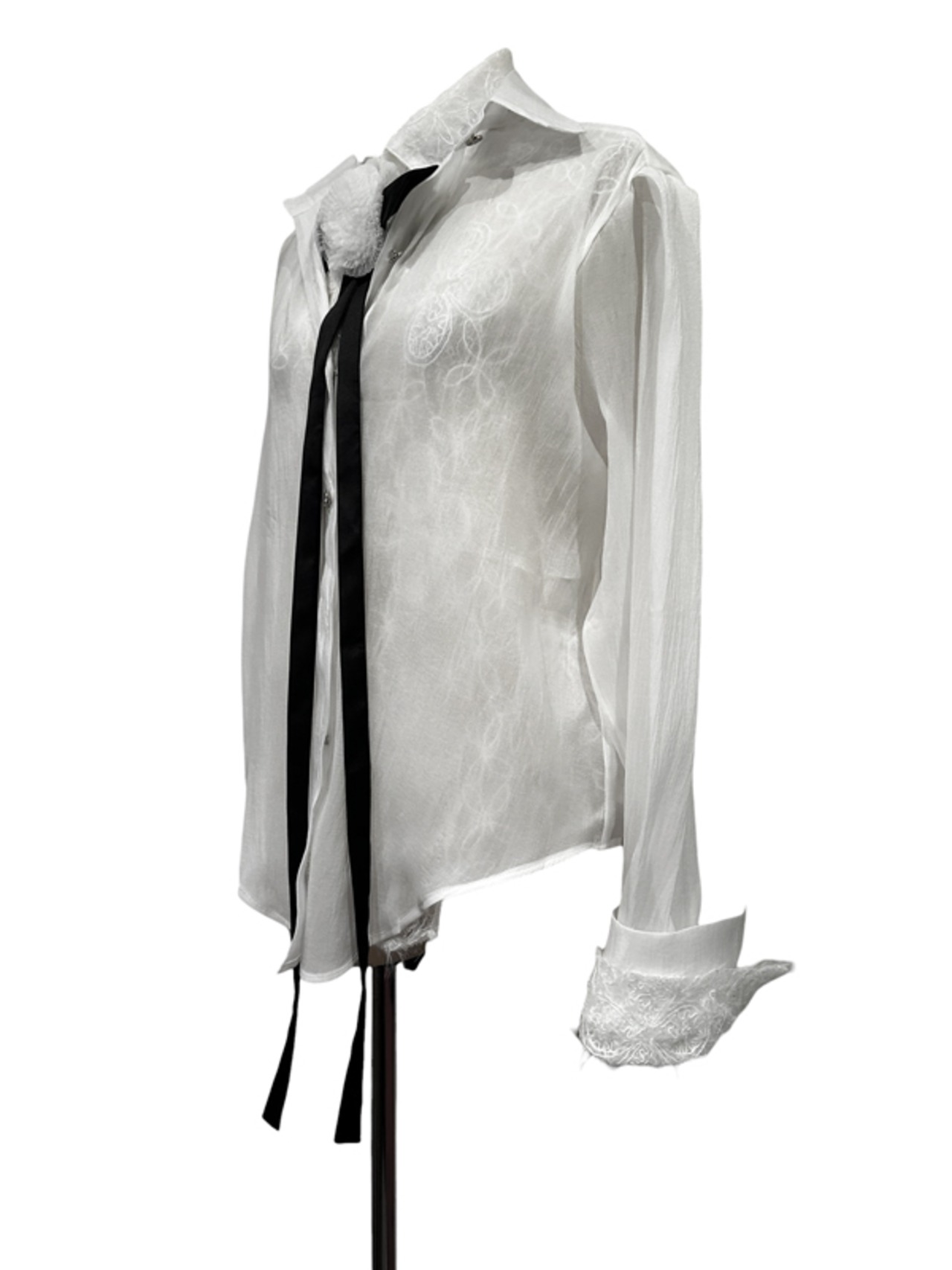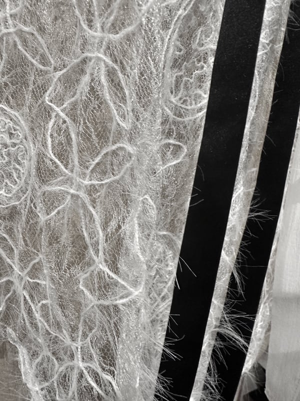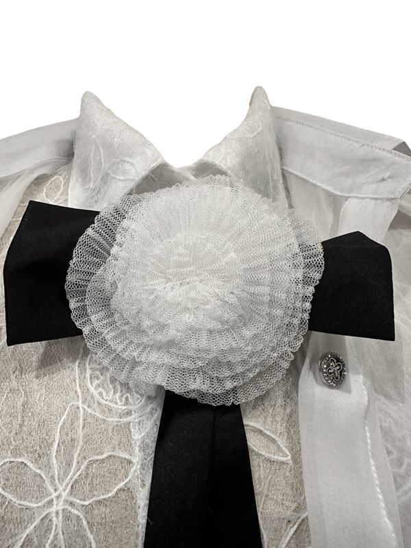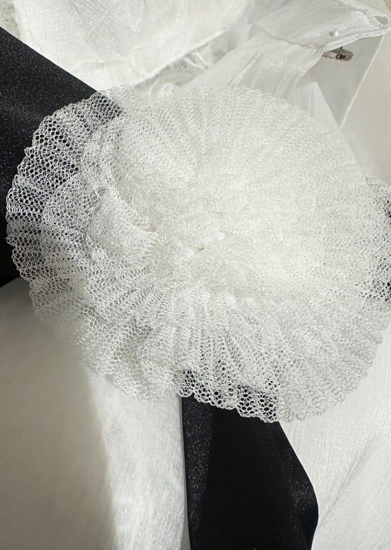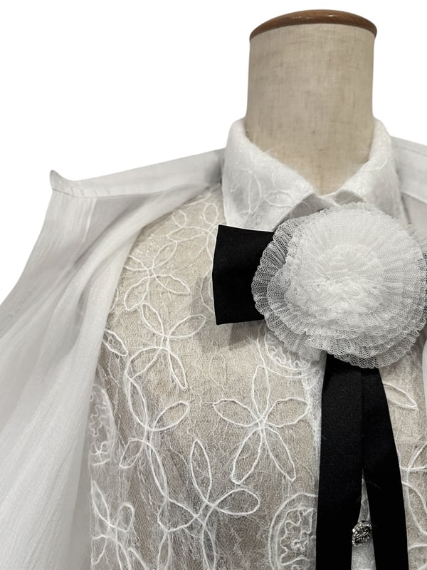 ■ディテール 起毛メッシュレース/シフォンレイヤード/コサージュボウタイ(取り外し可能)