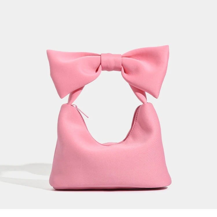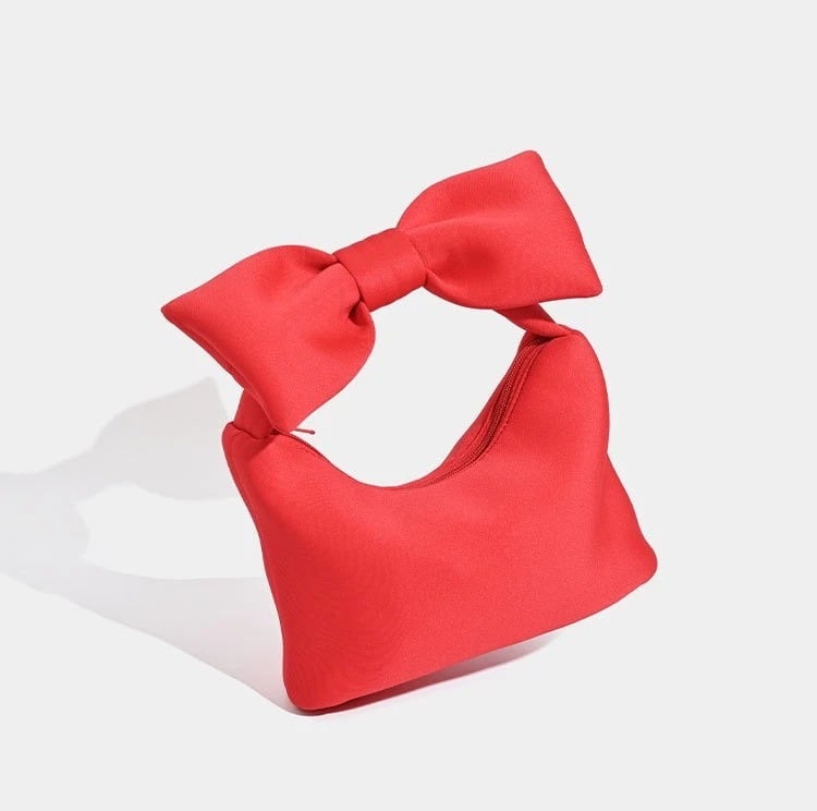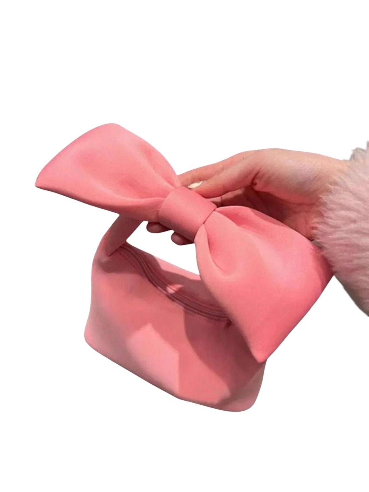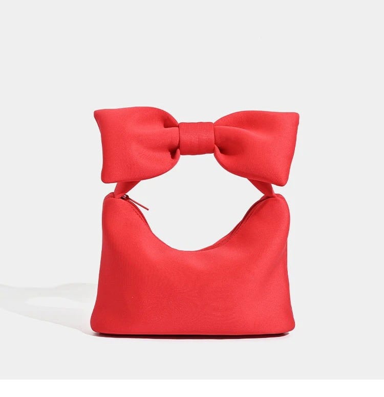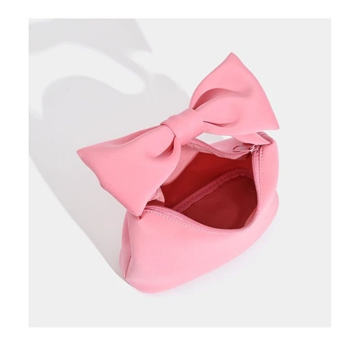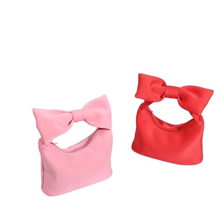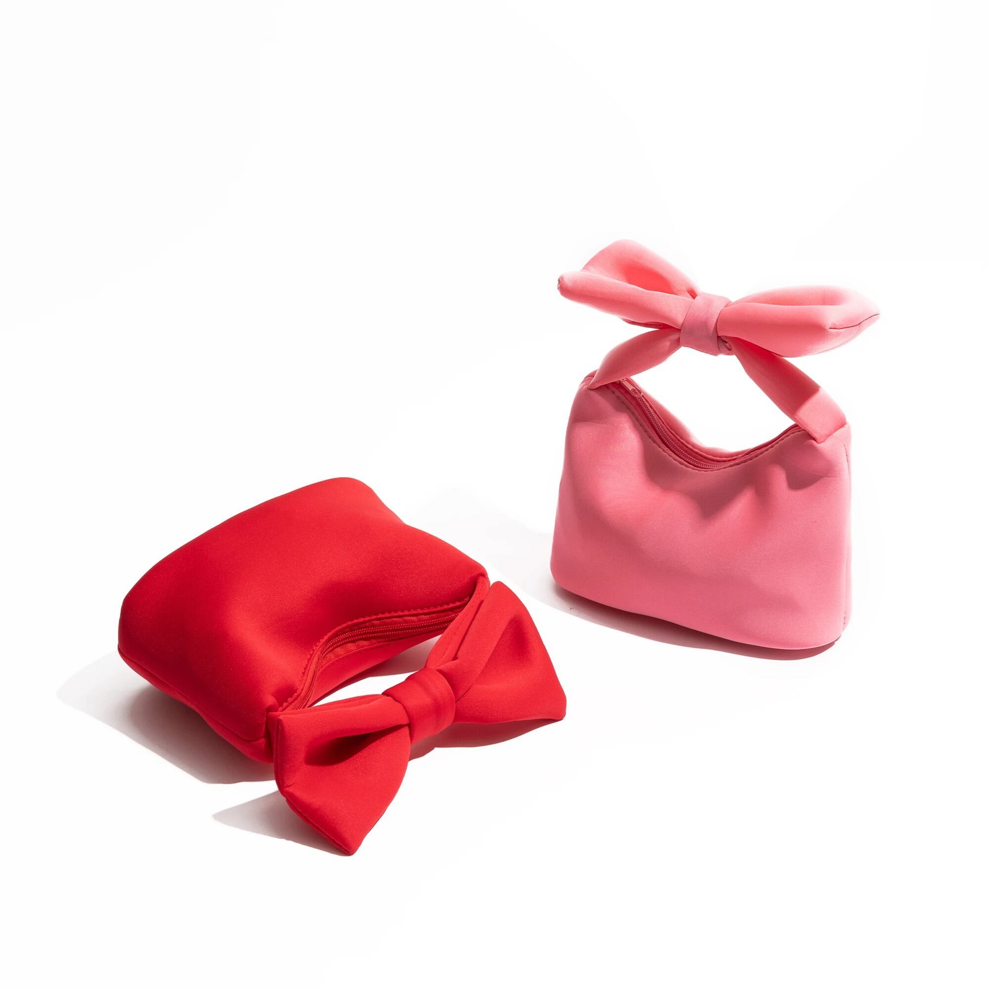 ジッパー/ネオプレン素材/ビッグリボン/ミニバッグ
