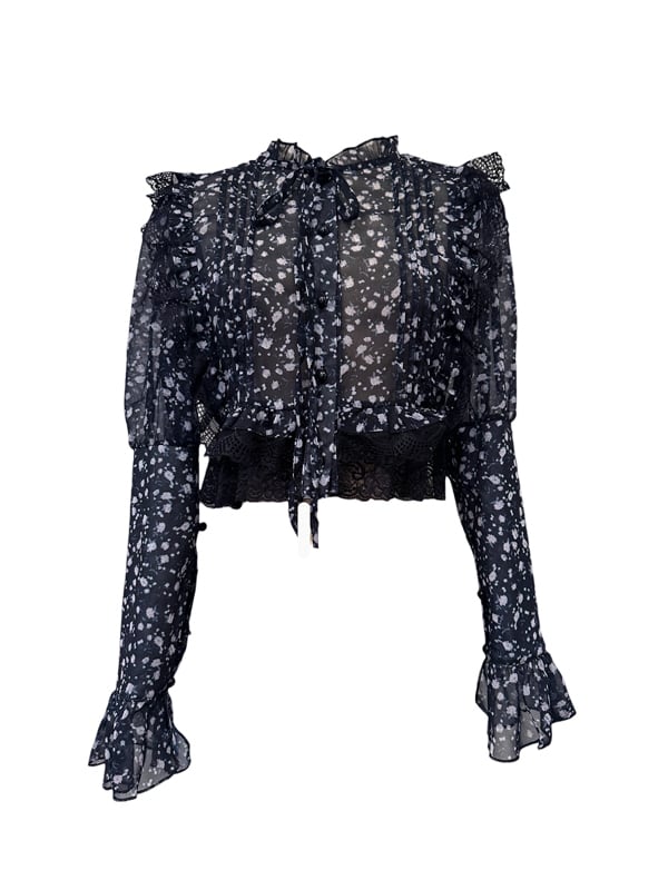 ■ディテール ブラウス・スカート・ショートパンツの3ピース/シフォン/Floralパターン/レーストリム/ジャージー素材のショートパンツ