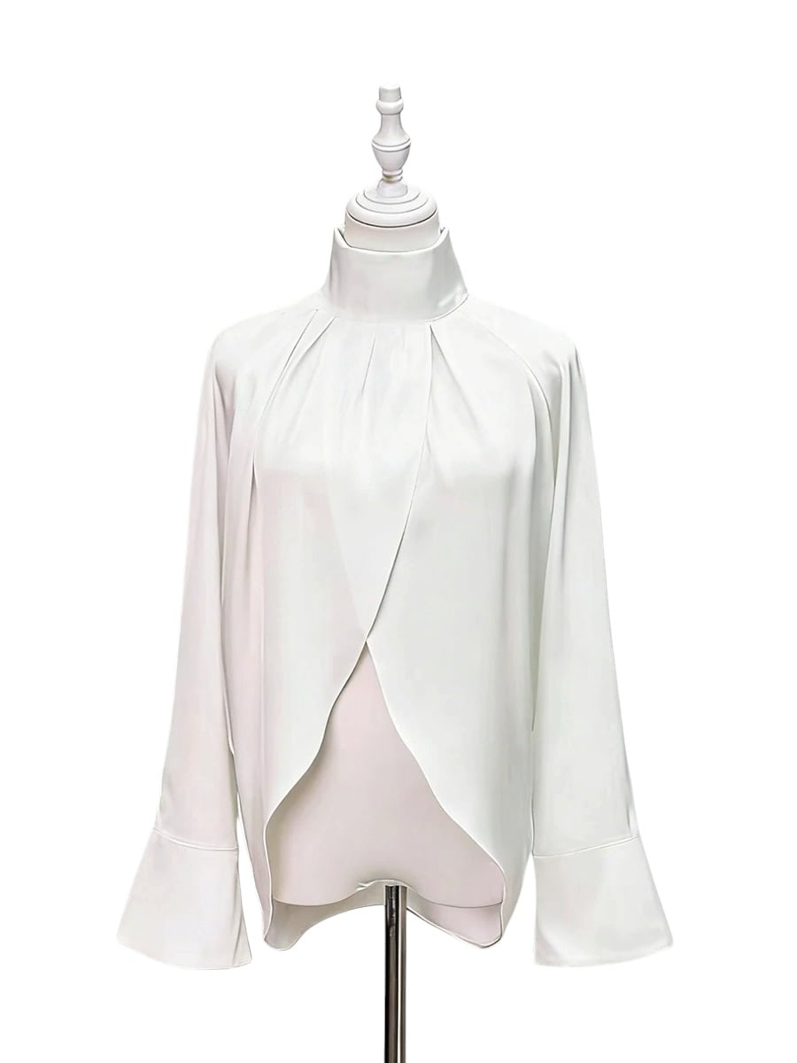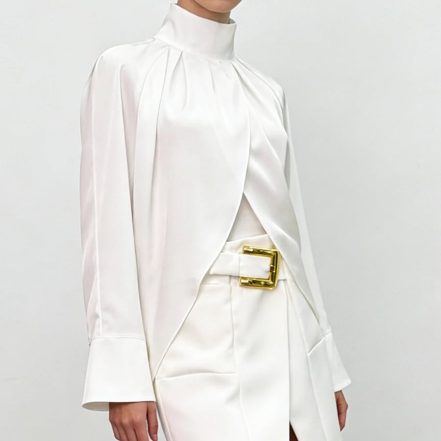 ■ディテール サテン/スタンドカラー/フロントスプリット/プルオーバー