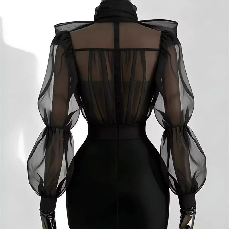 ■ディテール オーガンジー/メタリック/ボウタイ/ダブルパフスリーブ