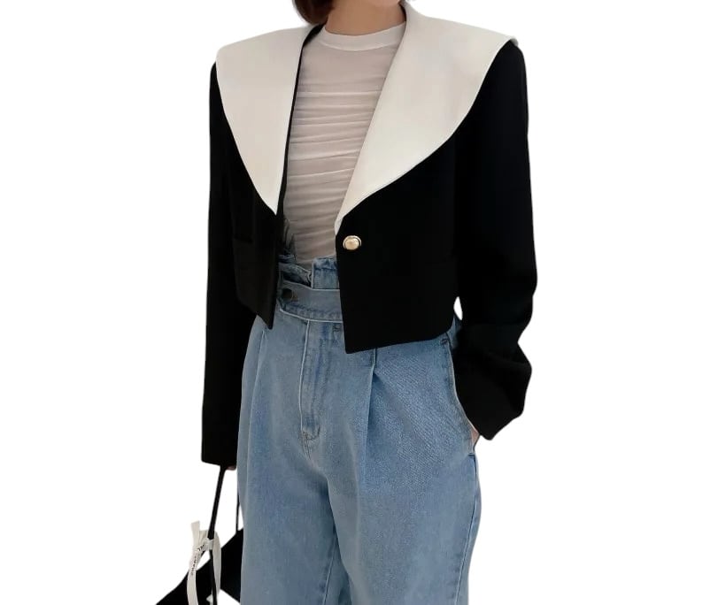 ■ディテール ビッグカラー/配色/1ボタン/ショート丈/薄手/裏地あり