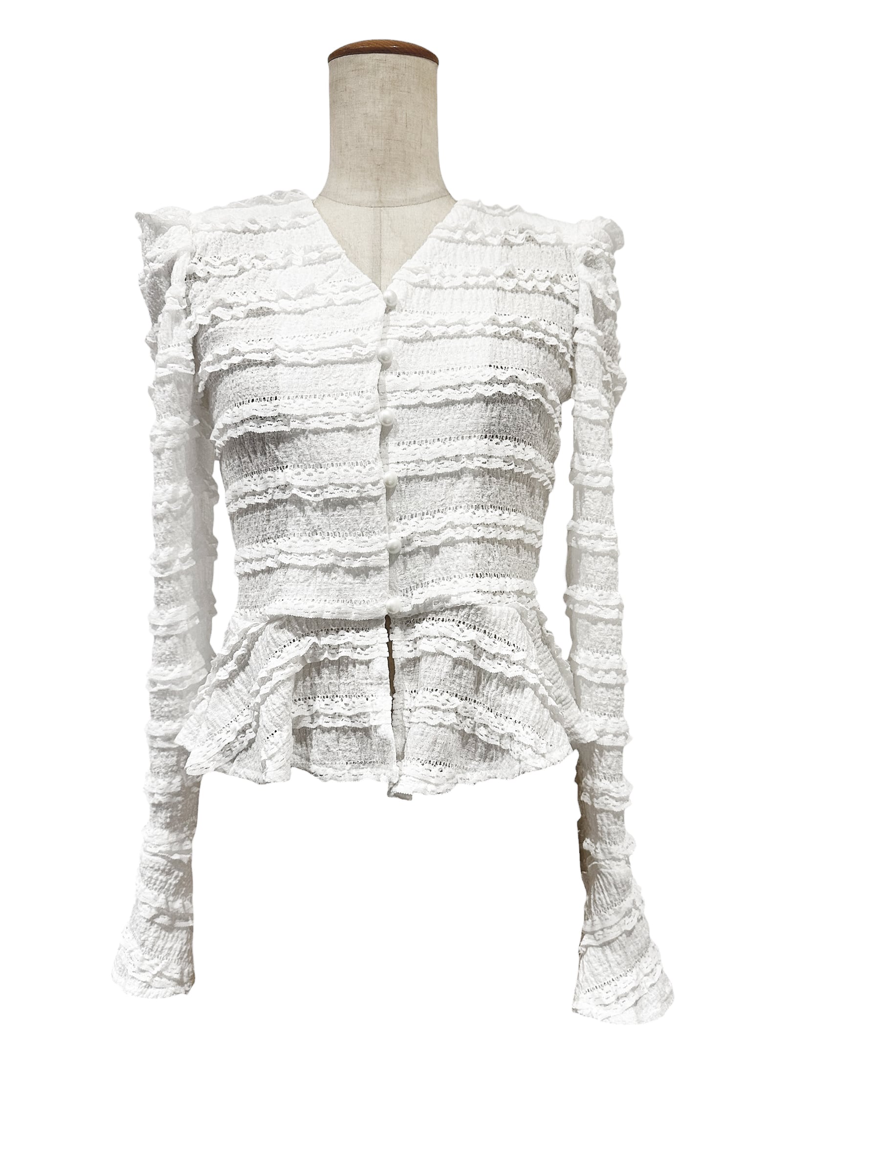 ■ディテール ジャージー/ストレッチ/vネック/レースティアード/カーディガン/パワーショルダー
