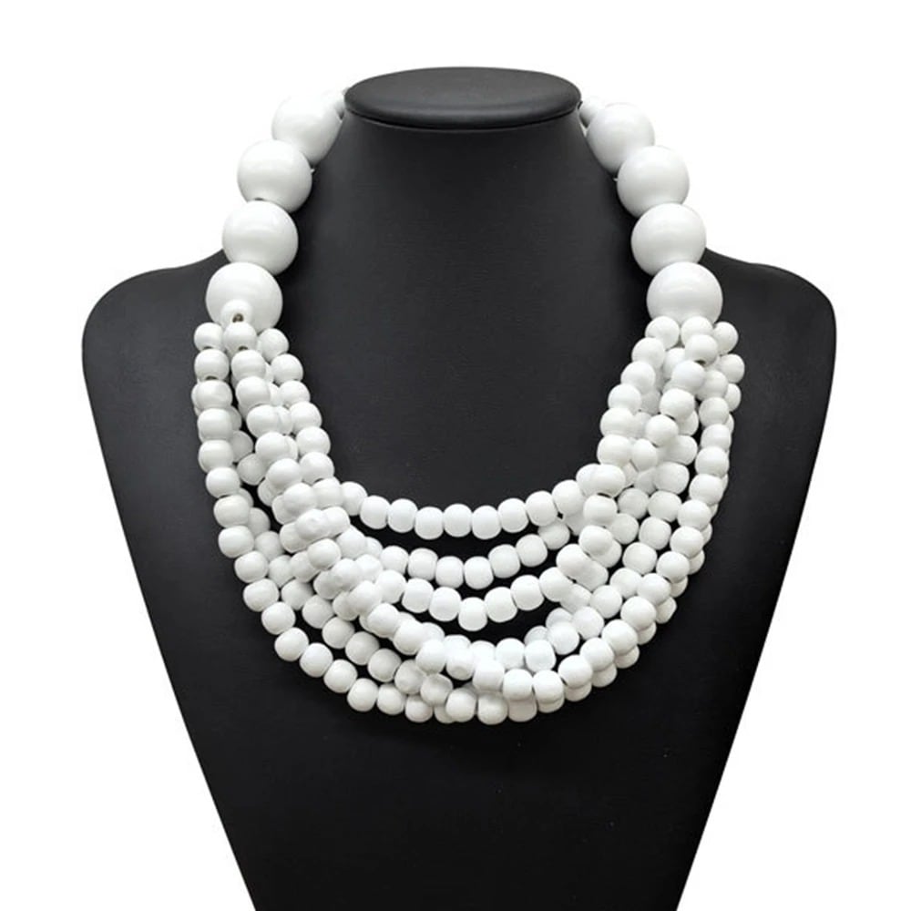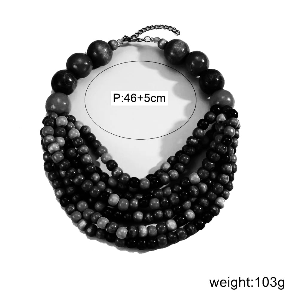 ■ディテール ウッドネックレス/大小ボール/7連