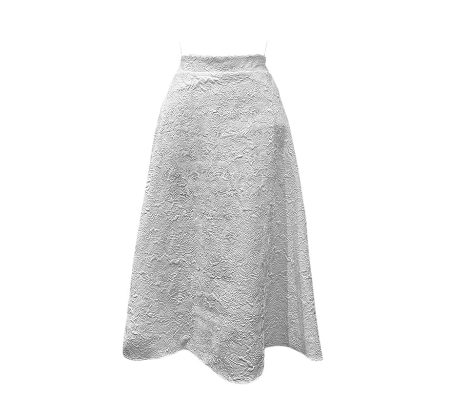 ■ディテール フレアシルエット/エンボス/後ろゴムのギャザー/サイドジッパー/裏地
