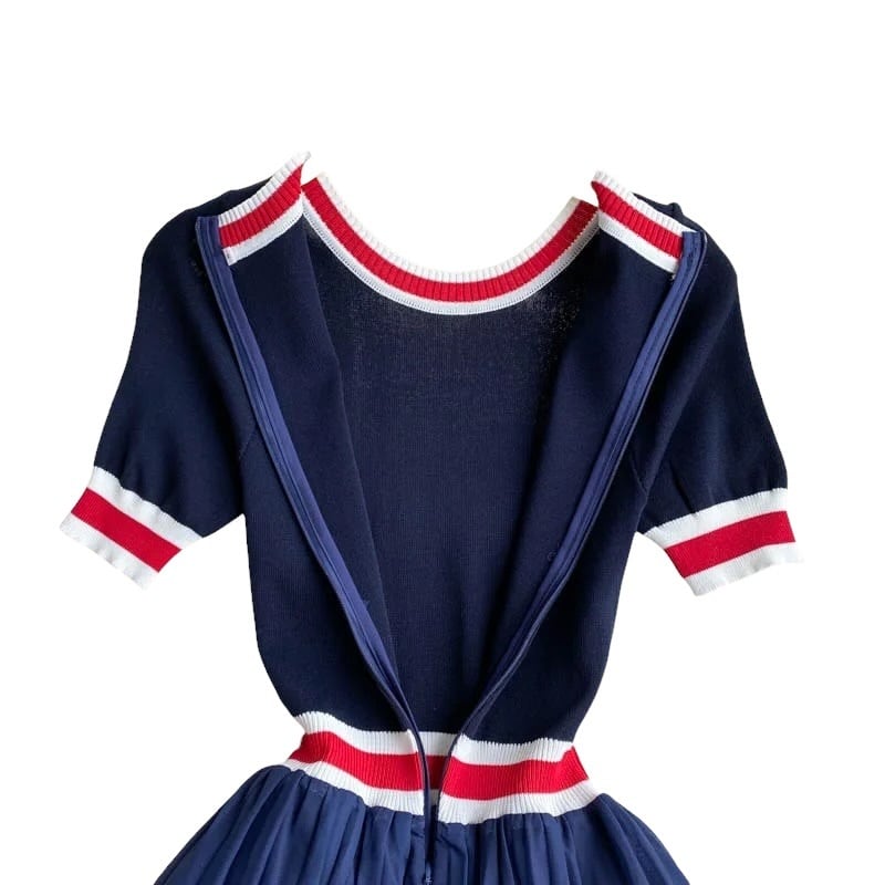 ■ディテール プリーツ/ストレッチニット/バックジッパー/裏地あり