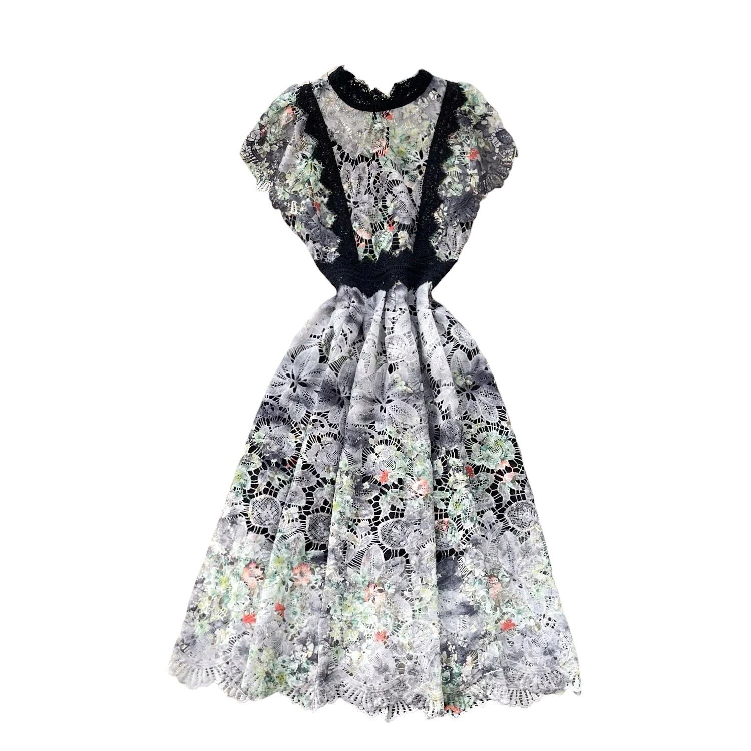 ■ディテール フローラルプリント/カットアウト/レース/ジッパー/裏地あり