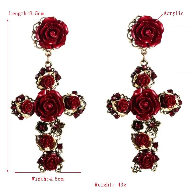■ディテール ビジュー/ローズ/ドロップピアス/クロス