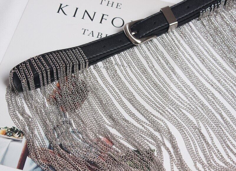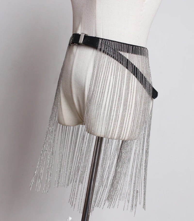 RIMI&Co. SELECT PUレザーメタルチェーンフリンジベルト