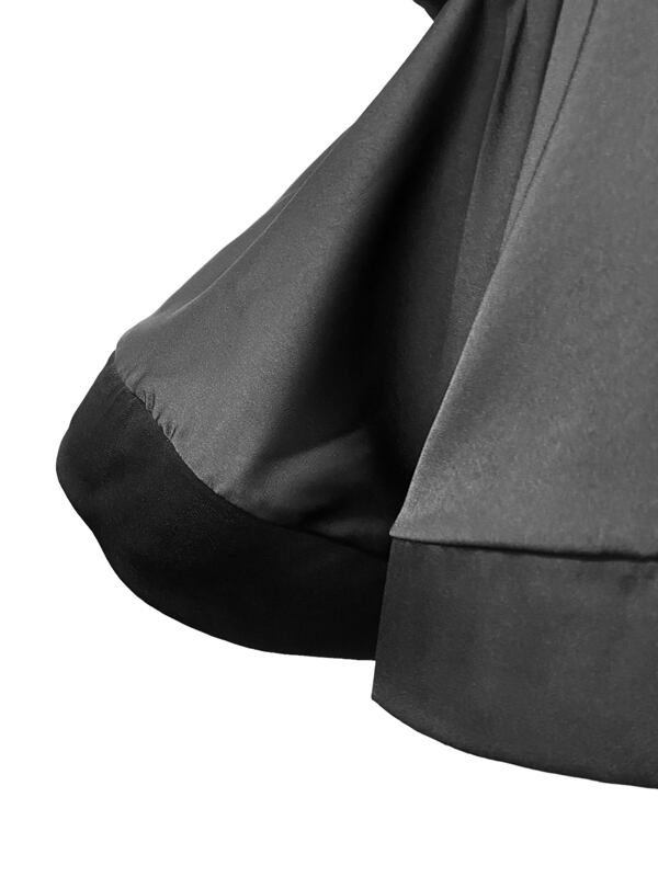 ■ディテール サテン/ボウタイ/ラッフルヘム/プルオーバー/ウエストゴムのギャザー/ショルダーパッド/ストレッチ無し