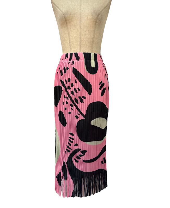 ■ディテール プリーツ/プリント/ストレッチ/フリンジ/タイトシルエット/プルオン