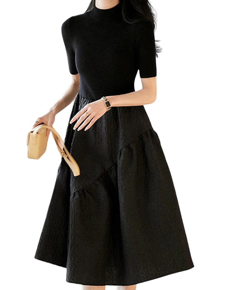 ■ディテール リブニット/ドッキング/エンボススカート/プルオーバー/裏地なし