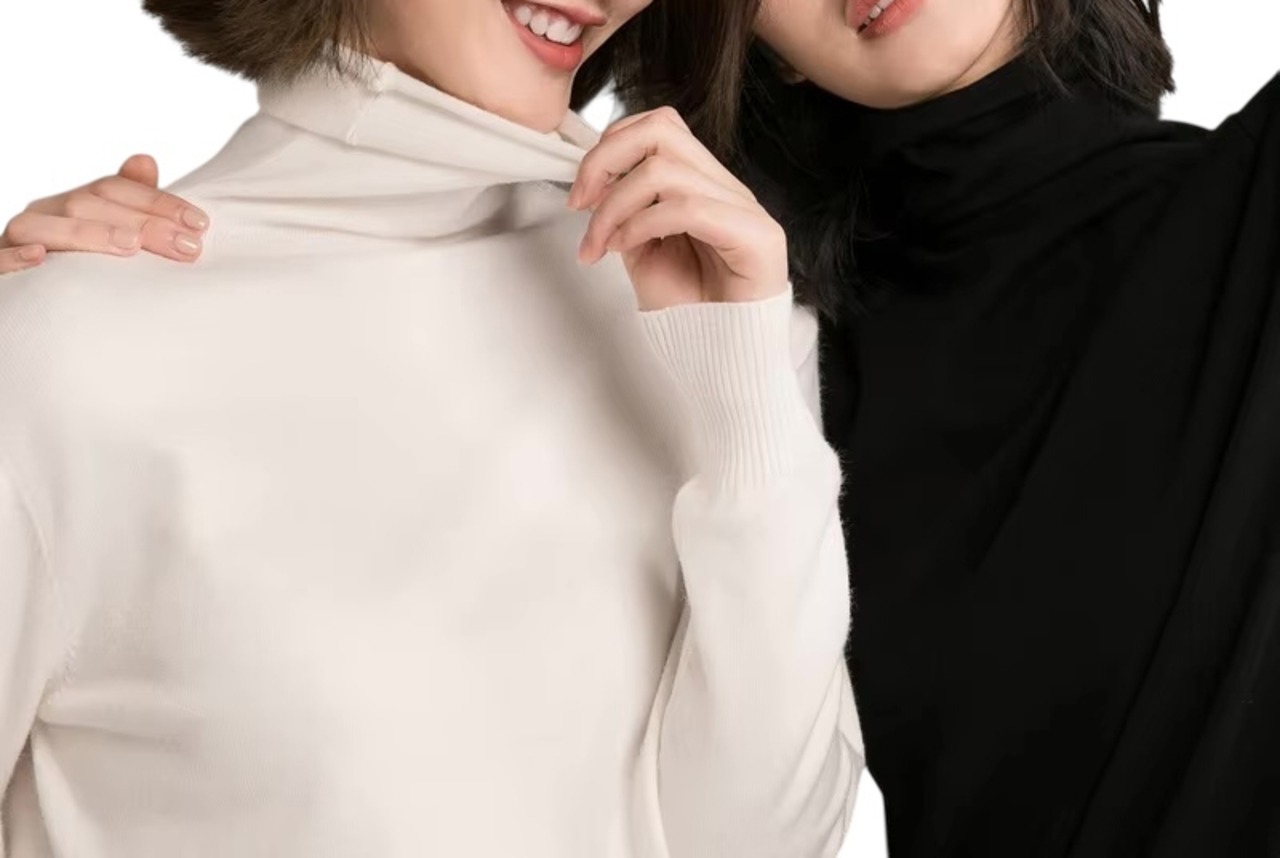 ■ディテール ストレッチニット/ハイネック/ソフトタッチ/ リブ切替