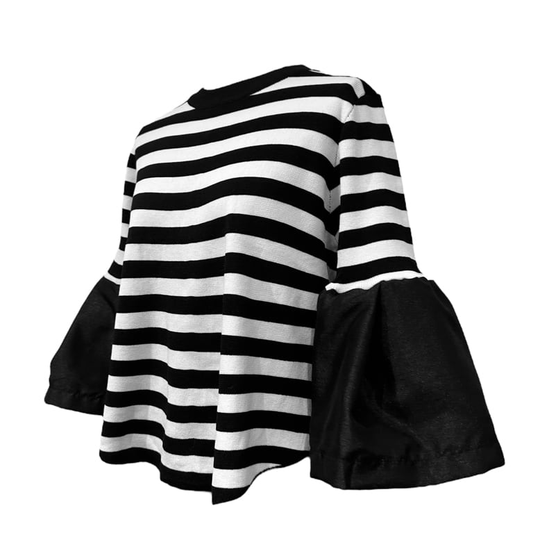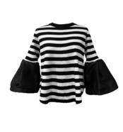 ■ディテール ニット/サテン切り替え/ストレッチ/ラウンドヘム/プルオーバー