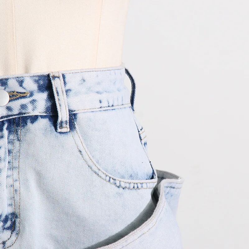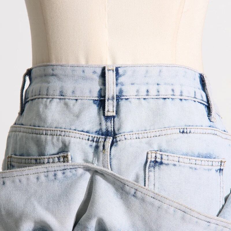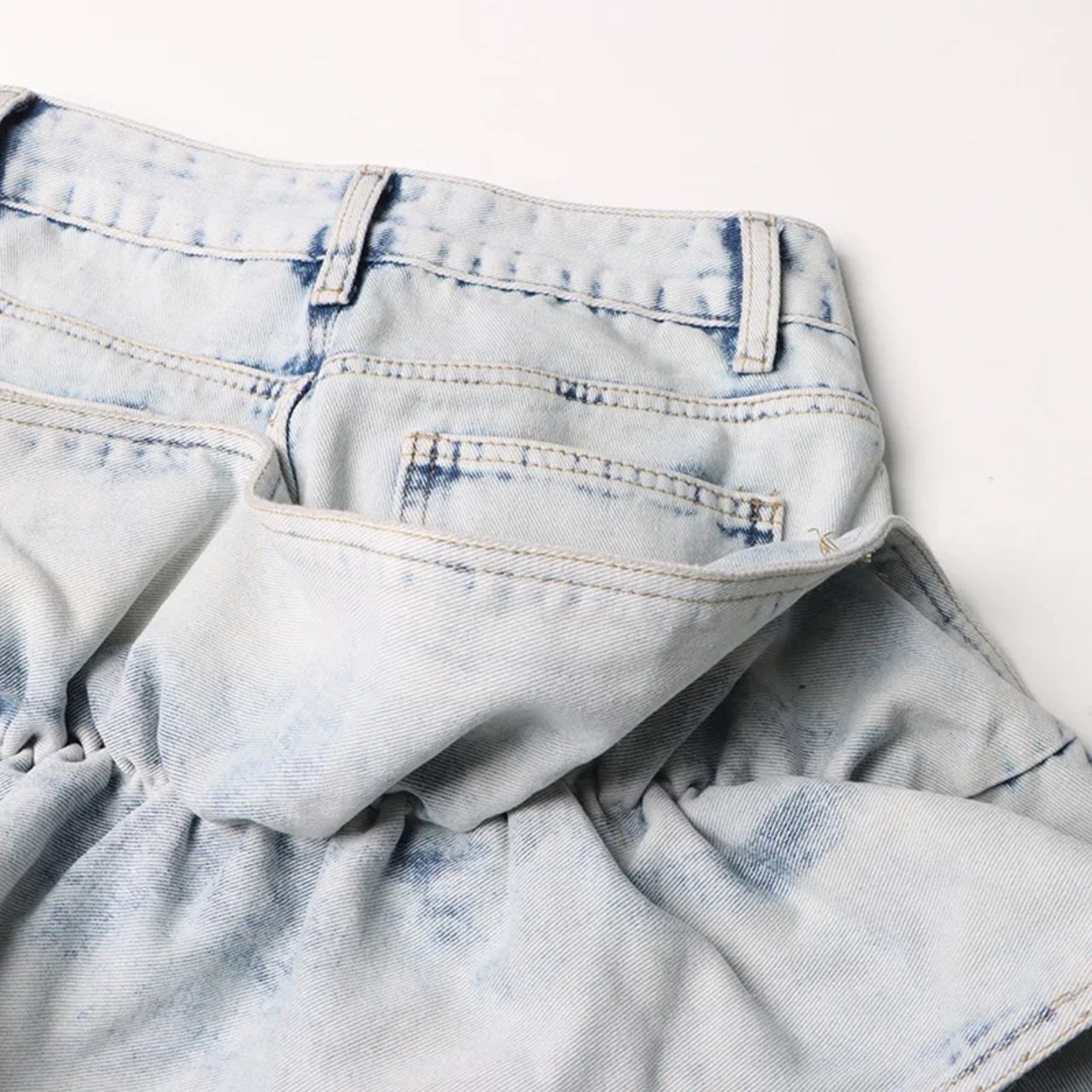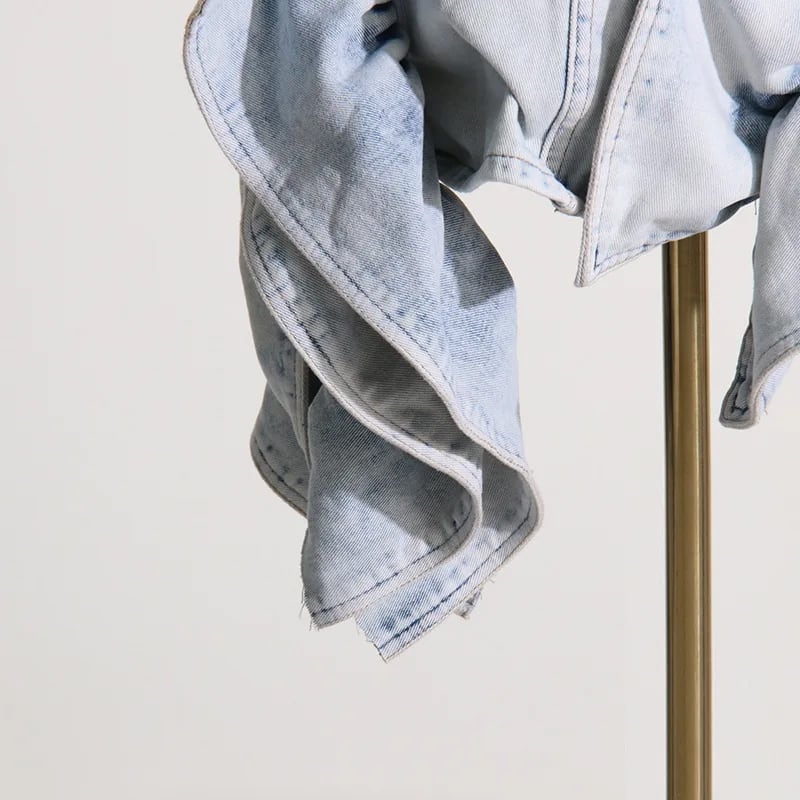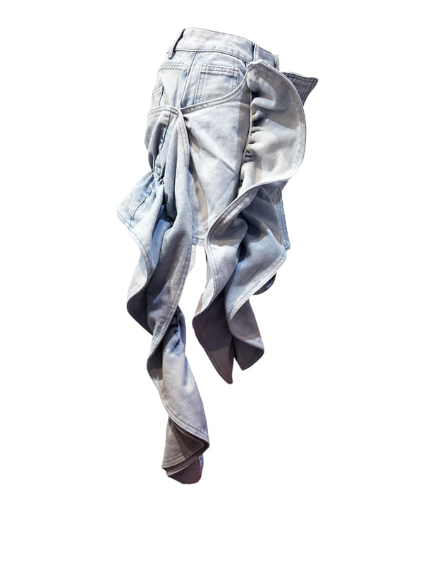■ディテール ミニ丈/ウォッシュデニム/ラッフル