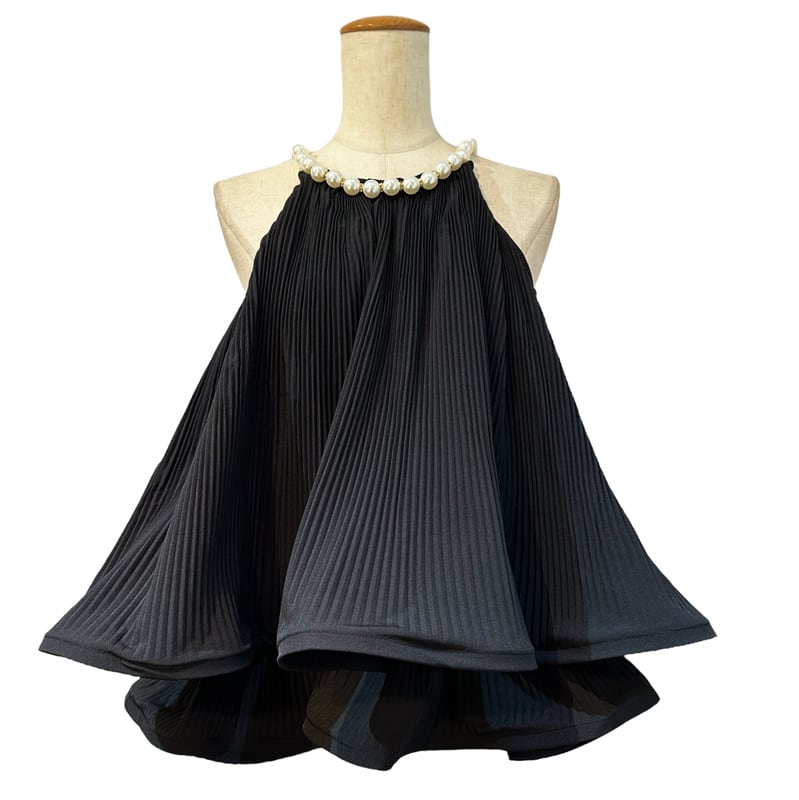 ブロードクロス/プリーツ/プルオーバー/パールトリミング/裏地あり