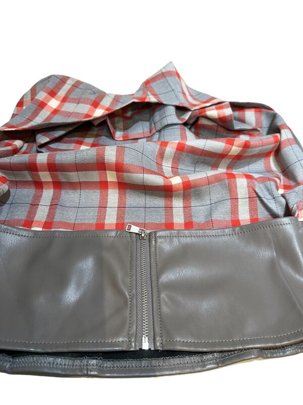 ■ディテール ホルターネック/裾部分PUレザー/ドレープ/チェック部分:ネル素材/チェック/ジッパー