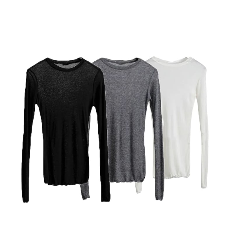 ■ディテール タイトフィット/ストレッチニット/ニットジャージー/薄手/プルオーバー/クルーネック