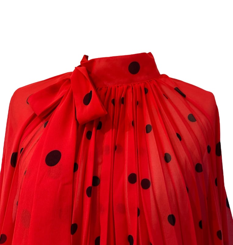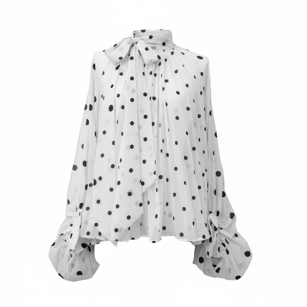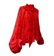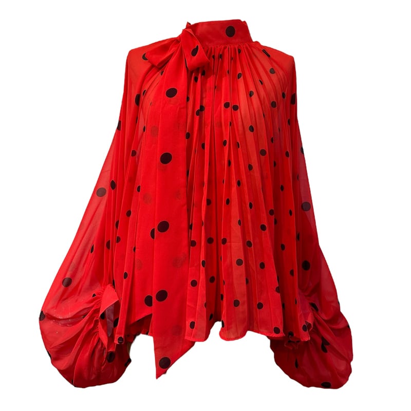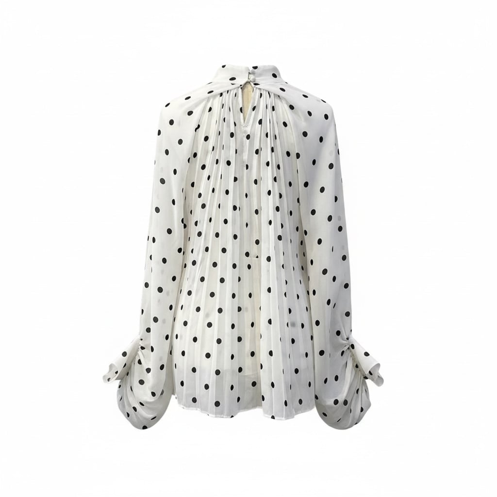 ■ディテール シフォン/ポルカドット/スタンドカラー/プリーツ/ボリュームスリーブ/プルオーバー