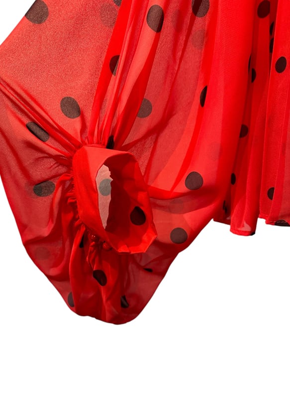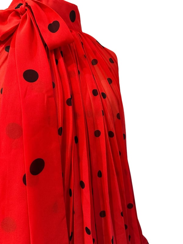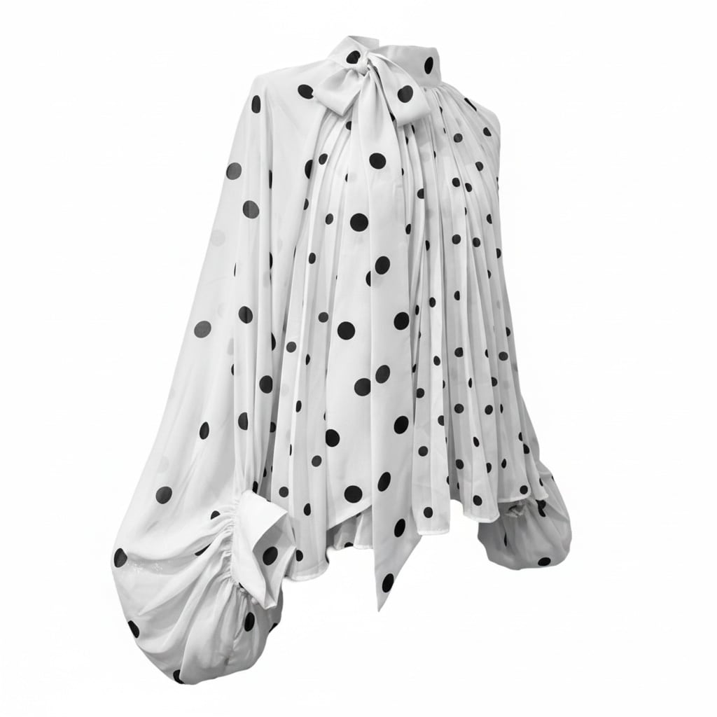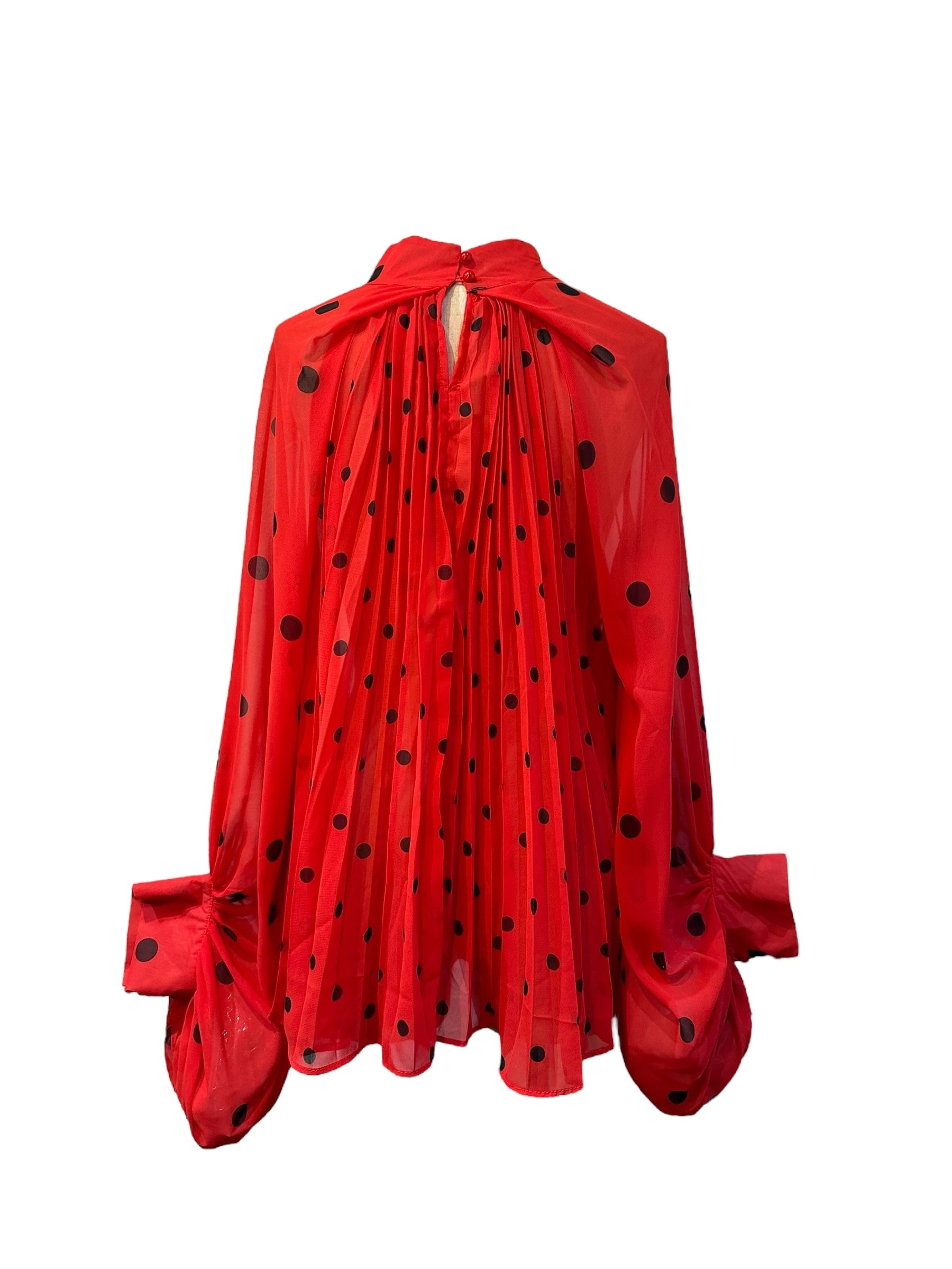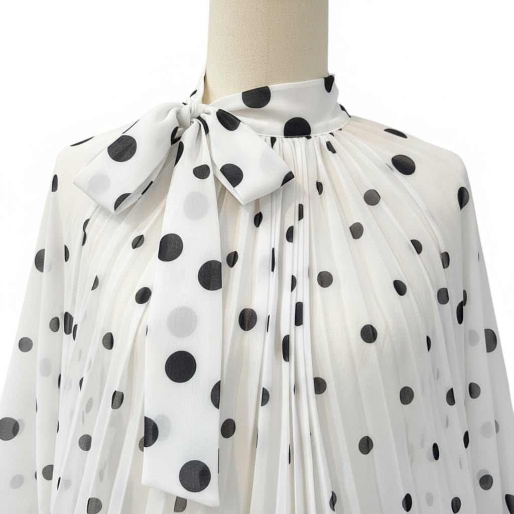 ■ディテール シフォン/ポルカドット/スタンドカラー/プリーツ/ボリュームスリーブ/プルオーバー
